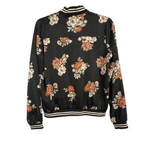 American Eagle Women's M Boho Satin Floral Zip Front Bomber Jacket Retro Italy