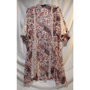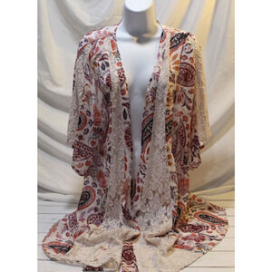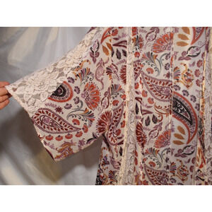 American Eagle Women's M Multicolor Floral Open Front Sheer Kimono Cardigan Lace Accent