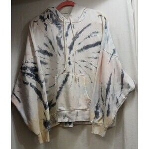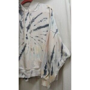 Womens American Eagle cropped hoodie in tie-dye colors (white, gray, pink, and yellow tones). Size Medium. Long sleeve pullover with hood and front pocket. Soft cotton blend fabric, slightly cropped fit.