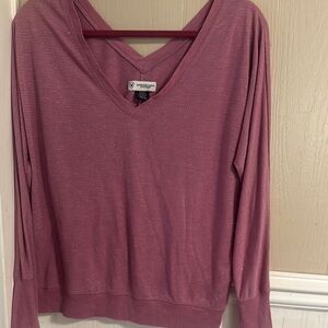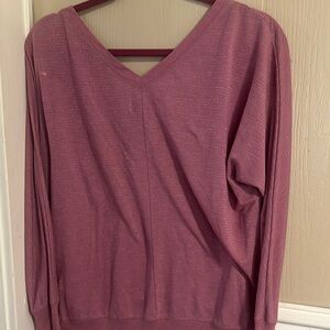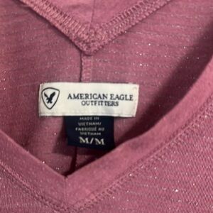Elevate your wardrobe with this American Eagle Outfitters women's top. Featuring a stylish mauve hue, this V-neck front and back top is perfect for any occasion. Enjoy comfort and style with this versatile piece. Fabric has a silver pinstripe threading throughout.
