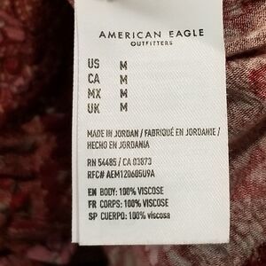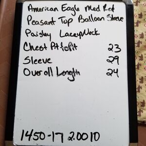American Eagle Womens Medium Boho Peasant Top Red Paisley Balloon Sleeve Viscose