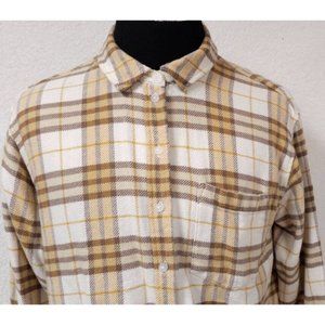 American Eagle Womens Medium Gold Plaid Very Soft Heavyweight Button Up Shirt