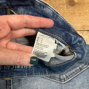 American Eagle | Women's Medium Wash Distressed Curvy High Rise Mini Skirt Sz 6