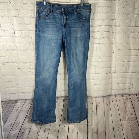American Eagle Womens Medium wash Kick boot Jeans size 14 Stretch X