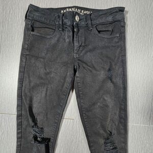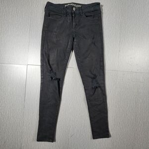 American Eagle Womens Mid-Rise Jegging Black Denim Jeans Distressed Size 4