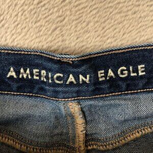 These American Eagle jeans embody a timeless style with a touch of rugged flair. The distressed hems and high-waisted design enhance the overall vintage-inspired aesthetic. The durable denim material ensures long-lasting wear, while the versatile medium blue color pairs effortlessly with various tops and accessories. The perfect blend of comfort and style for casual outings or relaxed days.