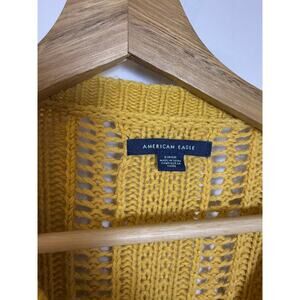 American Eagle Women’s Mustard Yellow Open Knit Cropped Sweater S