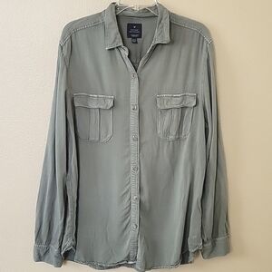 EUC American Eagle womens olive green vintage boyfriend button down shirt with chest pockets