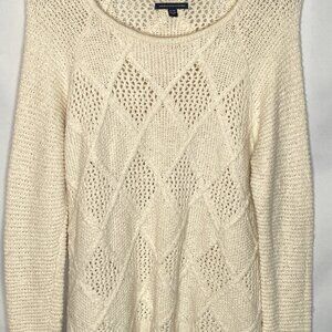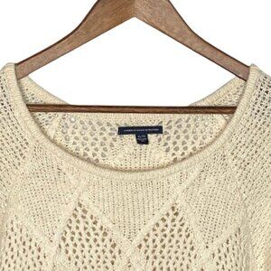 American Eagle Womens Open Cable Knit Sweater Size Extra Large Cream Casual Cozy