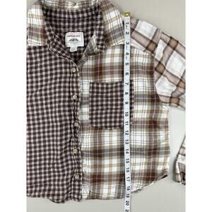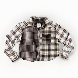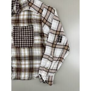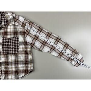 American Eagle Womens Patchwork Flannel Shirt XS Brwn Plaid Grunge 90s Boxy Crop