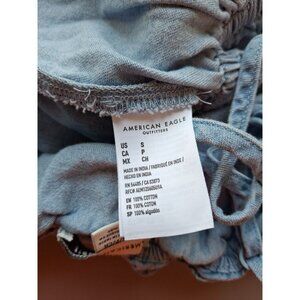American Eagle Womens Peplum Halter Top S Blue Denim Ruffle Boho