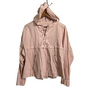 American Eagle Womens Pink Lace Up Neck Hooded Raw Hem Zipper Pockets Jacket XL