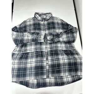 American Eagle Women’s Plaid Flannel Button Down Shirt Navy Blue Size M *Notes