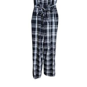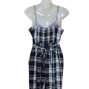 American Eagle Women’s Plaid Jumpsuit Medium Black White Linen Blend One Piece