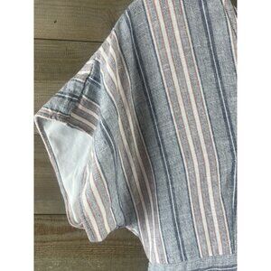 American Eagle Womens Romper Striped VNeck Cinched Waist Linen Blend Large