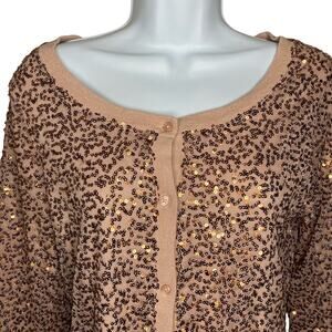American Eagle Women's Rose Gold Sequin Cardigan Sweater Button Front