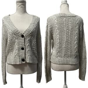 American Eagle Women’s S Button Front Cropped Cardigan Sweater Gray Cable Knit