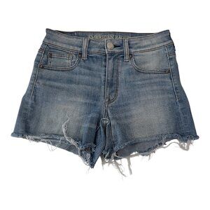 American Eagle Womens SZ 2 High Rise Distressed Denim Shortie Frayed Hemmed
