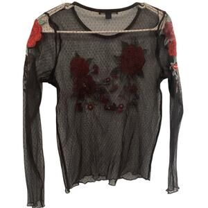 American Eagle Womens Sheer Shirt M Whimsigoth Swiss Dot Rose Embroidered Y2K