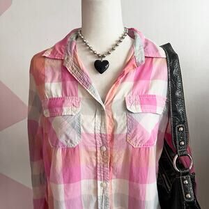 American Eagle Womens Shirt Cotton Button Down Large Plaid Y2K Academia Fall
