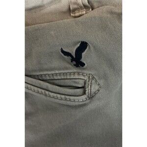 The product is a pair of American Eagle Women's 30 Gray Boy Fit Active Flex Slim 5 Pocket Casual Zip Fly Jeans. Made of denim with a cotton material, these shorts feature a 5-pocket design with a straight style and a regular fit. The grey color and solid pattern make them versatile for all seasons. With a zip and button closure, they offer comfort and breathability, making them suitable for everyday wear. Easy to care for with machine washable instructions, these jeans are a practical and stylish addition to any wardrobe.