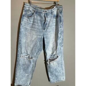 American Eagle Women's Size 18 Short Acid Wash Distressed Mom Jeans