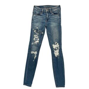 American Eagle Women’s Size 2 Distressed Skinny Jeans Next Level Stretch Blue