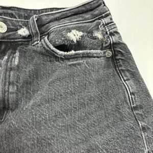 American Eagle Womens Size 4 Black Denim Relaxed Mom Shorts Distressed Cuff