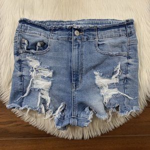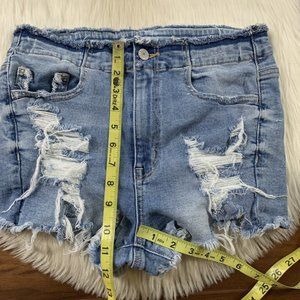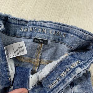 American Eagle Women's Size 6 Light Wash Distressed Hi Rise Shortie Jean Shorts