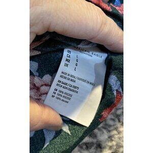 American Eagle Womens Size Large Boho Blue Floral Tie Front Blouse Top Cottage