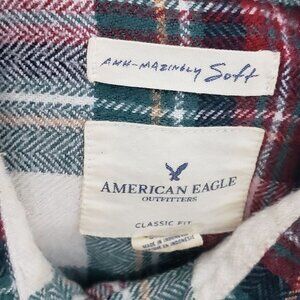 American Eagle Women's Size Small Red Green Soft Button Up Plaid Flannel Shirt