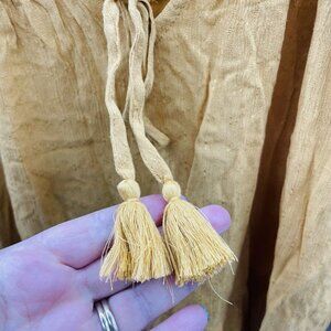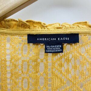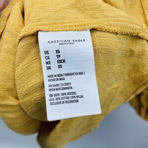 American Eagle Womens Size XS 3/4 Sleeve Boho Peasant Woven Blouse in Gold 2417