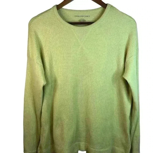 American Eagle Womens Small Oversized Chartreuse Green Waffle Thermal Top