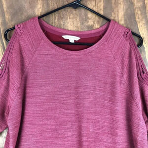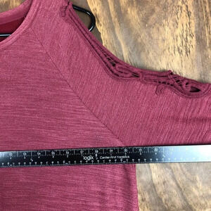 American Eagle Women's Small Red Knit Blouse with Cold Shoulder & 3/4 Sleeves