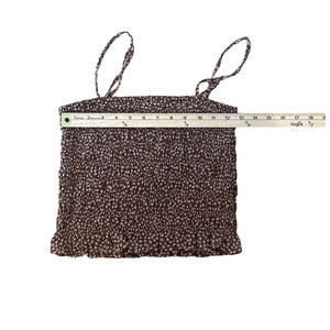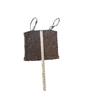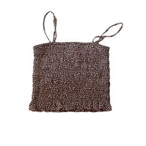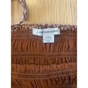 Gently preowned womens AMERICAN EAGLE smocked spaghetti strap top size small. Brown with pink flowers.