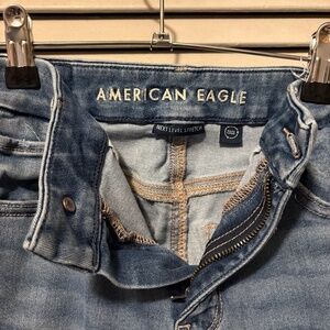 Ripped jeans, worn, good condition, stretchy material, high raised