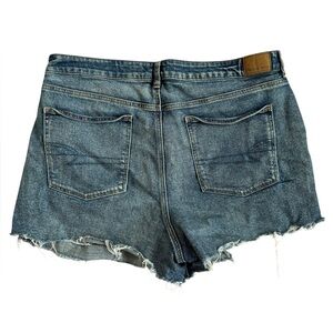 American Eagle Women's Strigid Denim Shorts Distressed Cross Waist Plus Size 18