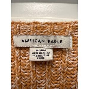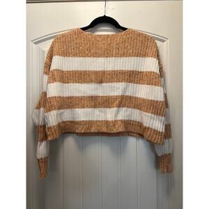American Eagle Women’s Striped Boxy Button Knit Cropped Sweater Size M Tan White