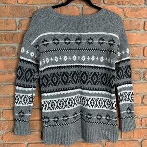 American Eagle Women's Striped Crewneck Knit Pullover Sweater Gray Black Size S