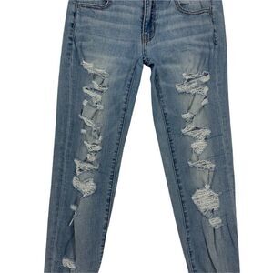 American Eagle women's Super Stretch light wash distressed denim jeans in excellent gently used condition. Smoke free & Pet Free!