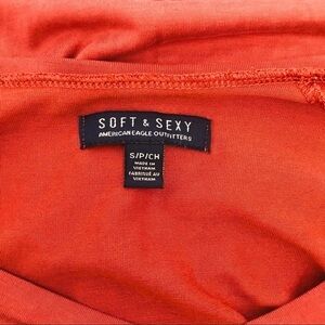 American Eagle Women’s Terracotta Orange Long Sleeve Ruffle Back Top Small