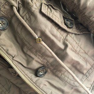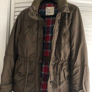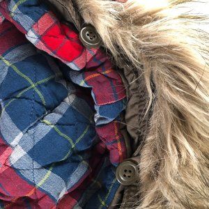Quilted interior with red flannel. Drawstring waist line. Plenty of pockets!!