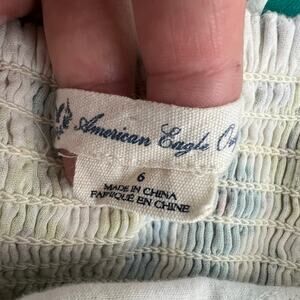 American Eagle women's vibrant colorful mini dress. Halter scoop neck. High waist. Smocked in back. Lined chest and skirt. Side pockets. In good used condition. No stains, tears or holes.