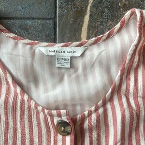 American Eagle Womens XS Flowy Striped Cap Sleeve Short Tiered Dress Red White