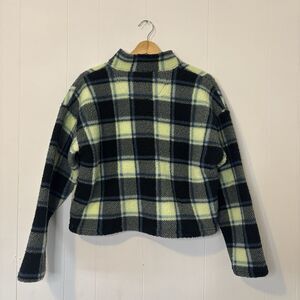 American Eagle Outfitters Green / Blue Plaid Cropped 1/4 Zip Fleece Sherpa Pullover XS Comfort Soft Loungewear