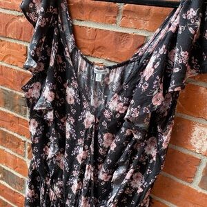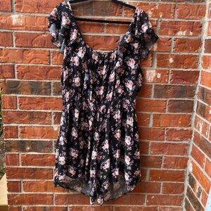 American Eagle Womens XXL Black Floral Flutter Sleeve Romper Shorts