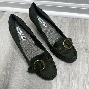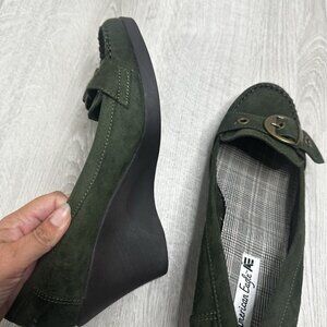 American Eagle Womens Y2K Wedge Loafers Shoes Sz 11 Green Buckle Preppy Academia