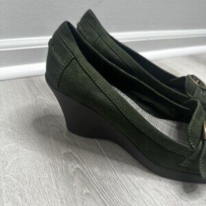 American Eagle Womens Y2K Wedge Loafers Shoes Sz 11 Green Buckle Preppy Academia