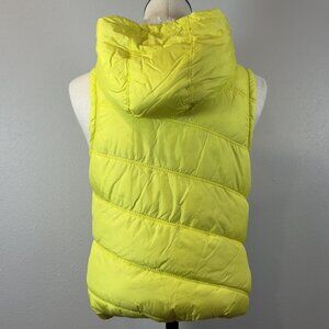 American Eagle Womens Yellow Puffer Vest Faux Fur Hooded Zip Pockets Size Small