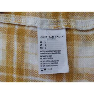 American Eagle Womens Yellow & White Plaid Cropped Button-Up Shirt L.